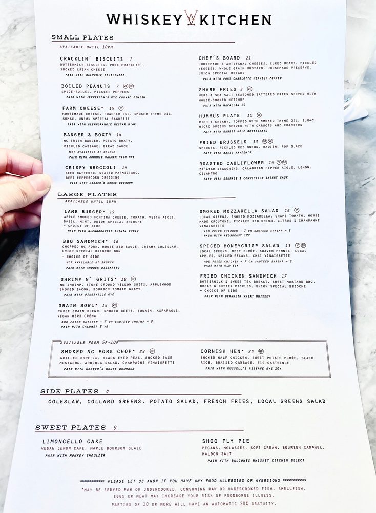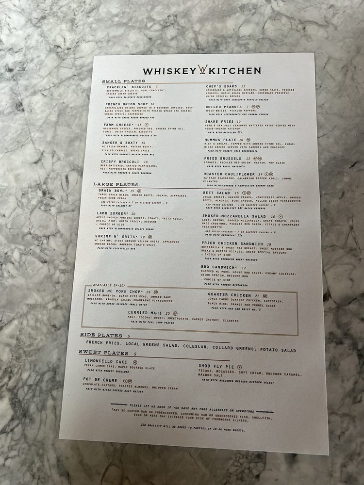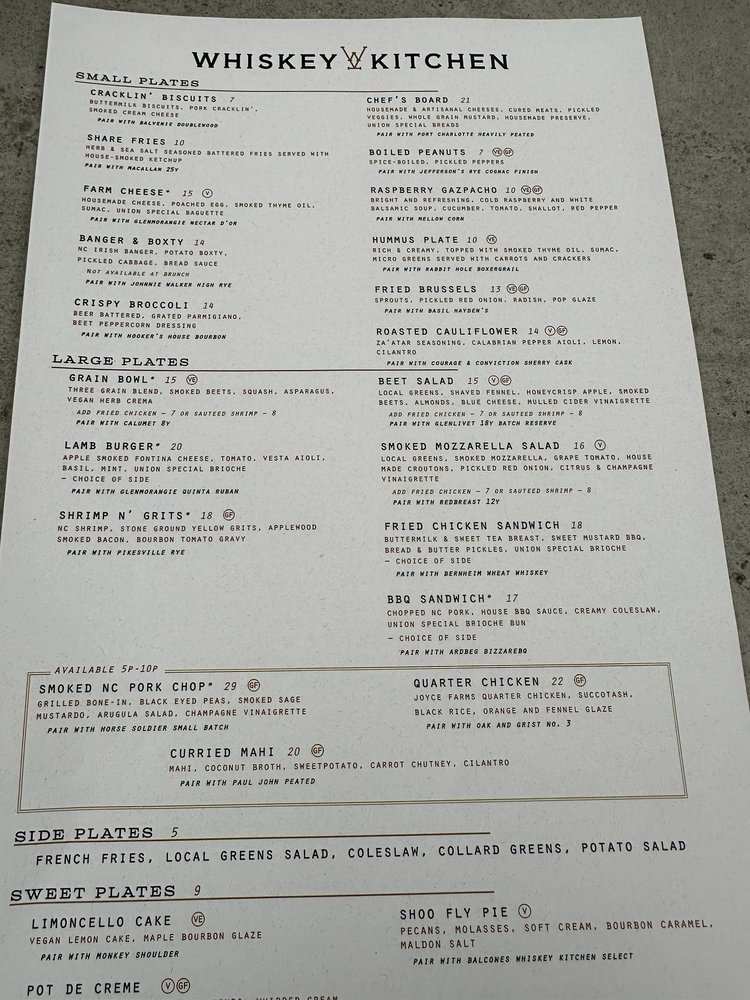 Whiskey Kitchen is a trendy yet casual restaurant located in Raleigh, NC. Known for its extensive cocktail and drink menu, including half pours for some bourbons, this spot offers a unique and vibrant ambiance. The food is highly praised by customers, with options ranging from starters to burgers. The whiskey pairing is particularly recommended, adding a delicious touch to the dining experience. The atmosphere is described as fun and perfect for hanging out, especially on rainy days. With friendly staff and fabulous food and drinks, Whiskey Kitchen is a must-visit for those looking for a laidback, vintage, and chill vibe.